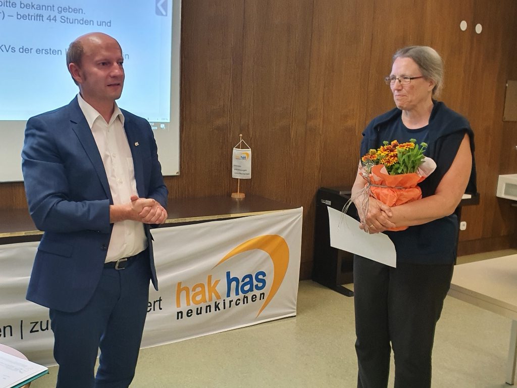 Frau OStR Prof. Dipl. Ing. Mag. Schermann Anneliese wurde am 30.6.2020 nach mehr als 40 Dienstjahren an der HAK / HAS Neunkirchen feierlich verabschiedet. Frau Prof. Schermann war eine allseits beliebte und fachlich versierte Pädagogin, die über viele Jahre den Mathematik- und Physikunterricht an unserer Schule geprägt hat. Wir wünschen Frau Prof. Schermann alles Gute und einen wohlverdienten Ruhestand.