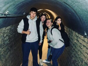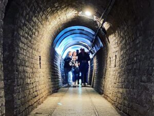 Nach einem schönen Spaziergang durch Mödling erwartete die 2AS und die 2AK ein äußerst schmaler und 450 m langer Mineneingang, welcher direkt ins Herz der ehemaligen Gipsmine führte.