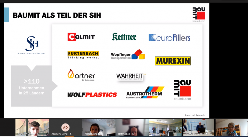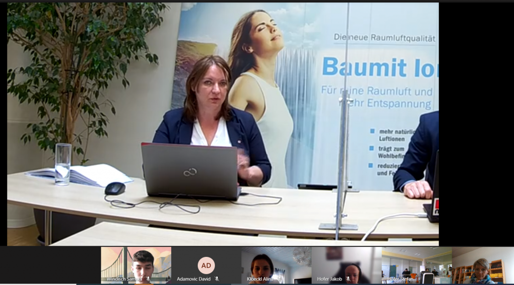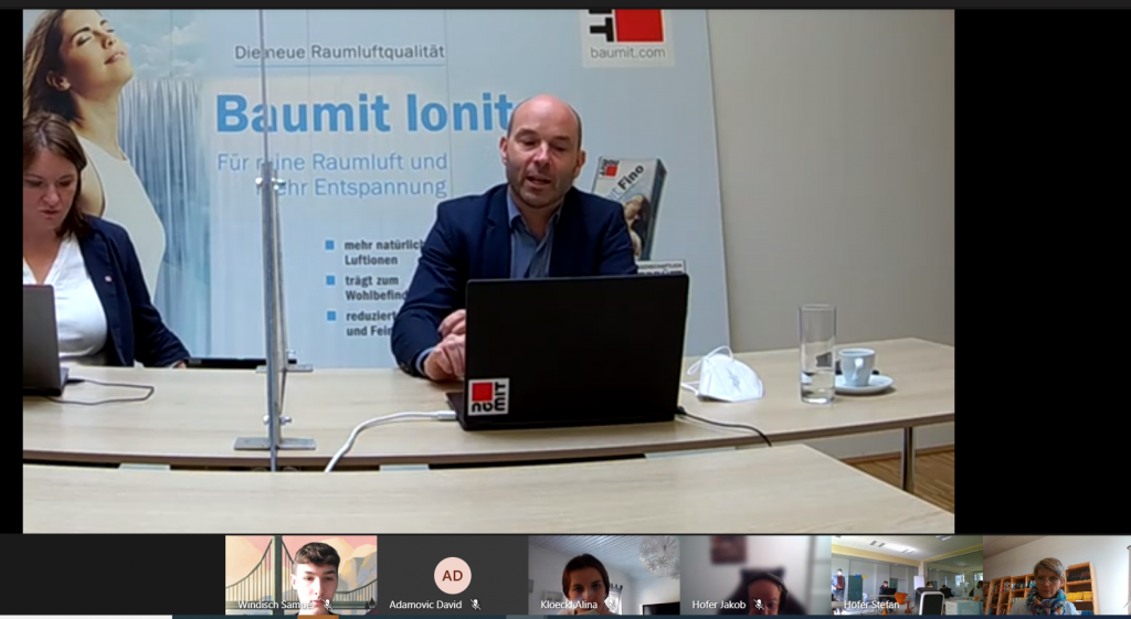 Nach diesem ersten Kennenlernen dürfen die Schülerinnen und Schüler jetzt ein konkretes Marketing-Projekt im Auftrag von Baumit bearbeiten. Die Ergebnisse werden in einigen Wochen präsentiert – und dann werden die Schülerinnen und Schüler den Online Vortrag gestalten. Dazu aber später mehr ….