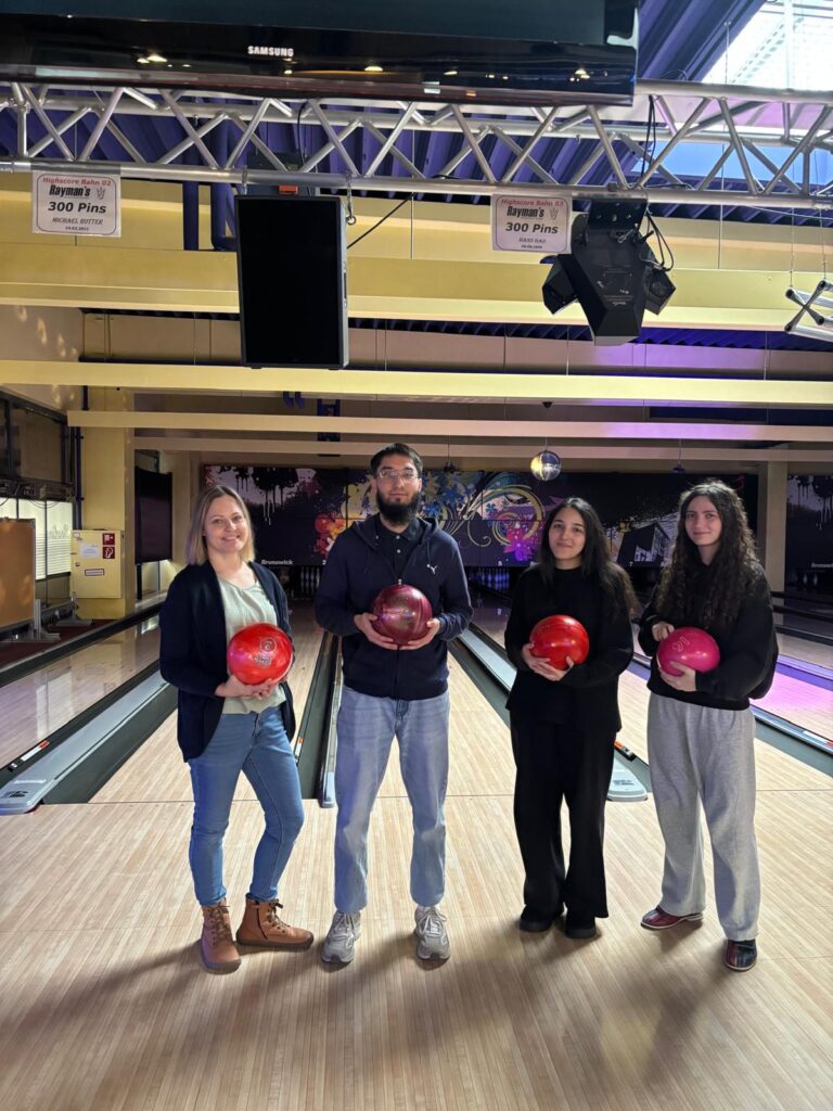 Gemeinsam mit KV und Co-KV, Prof. Jandl und Prof. Sommer, ging es in die beliebte Bowlinghalle Rayman’s in Wiener Neustadt. Vorab wurde vereinbart, dass die Gewinner:innen der ersten Runde am Zeugnistag einen Preis ergattern können – dementsprechend war das Wettkampffieber sofort entfacht.