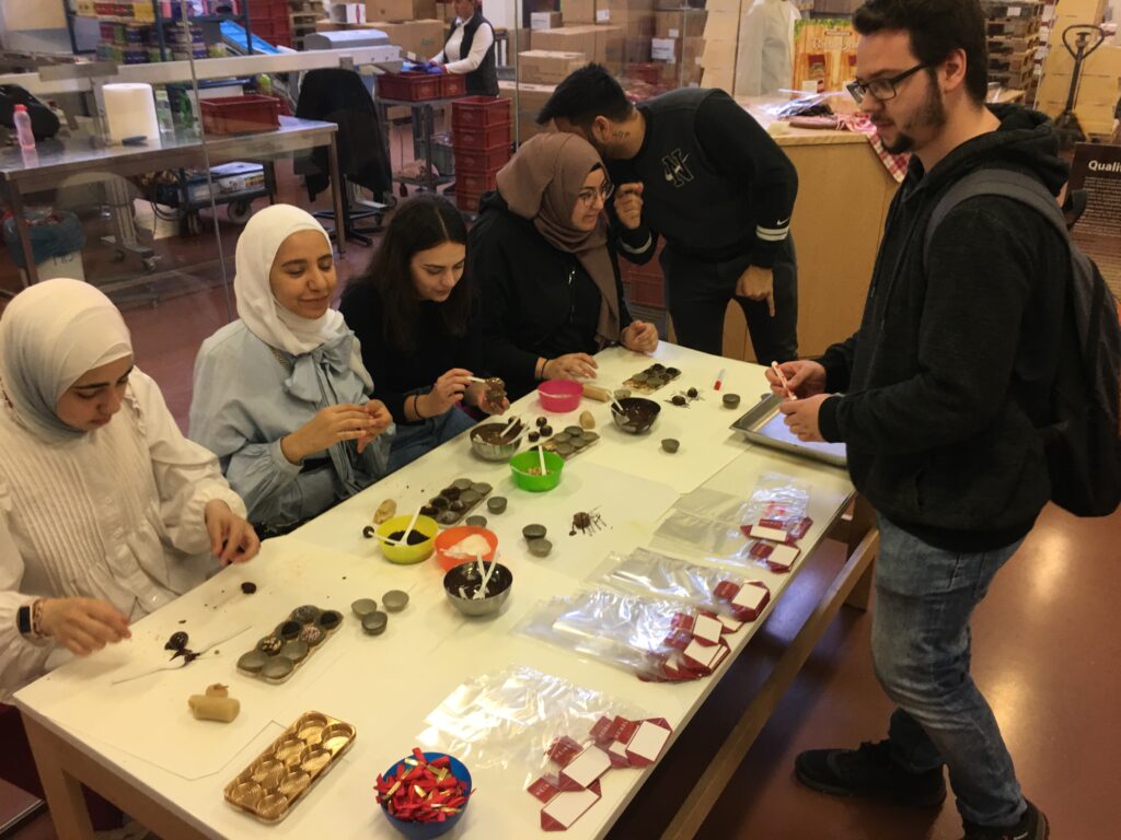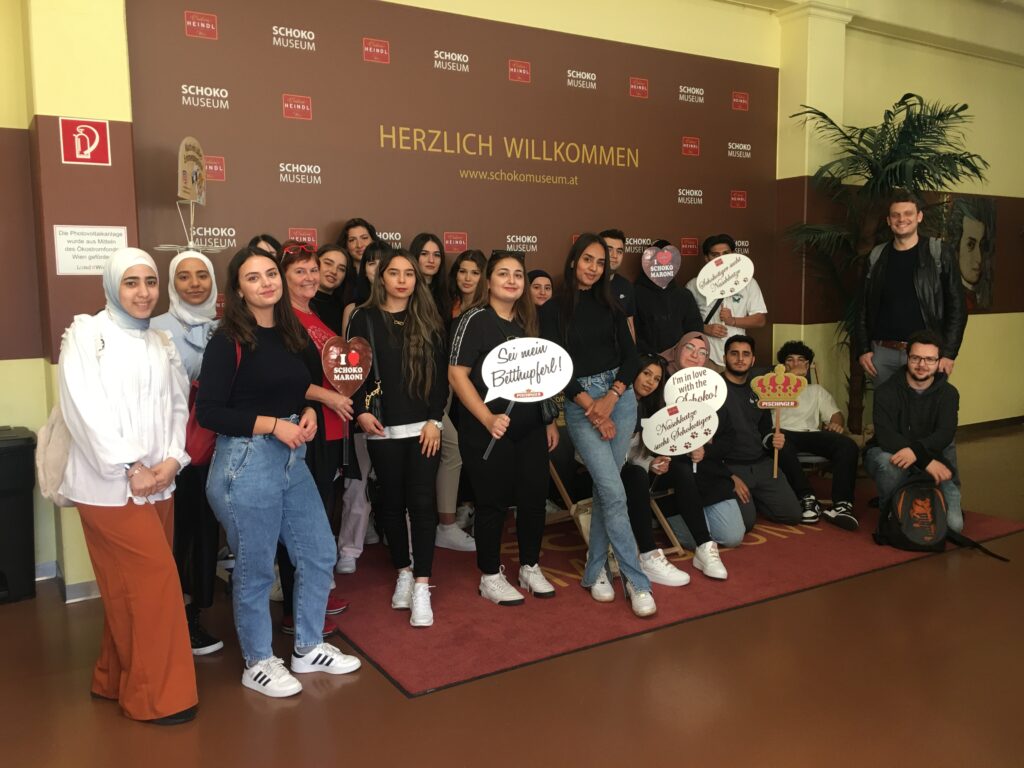 Im Anschluss ging es dann in das Heindl Schokomuseum, wo die Schüler*innen mehr über die Produktion und den Vertrieb der Schokolade erfahren konnten. Im Anschluss durften sie sich im Zuge eines Pralinenworkshops selbst in Kreativität üben und selbst ihre eigenen Kreationen herstellen.