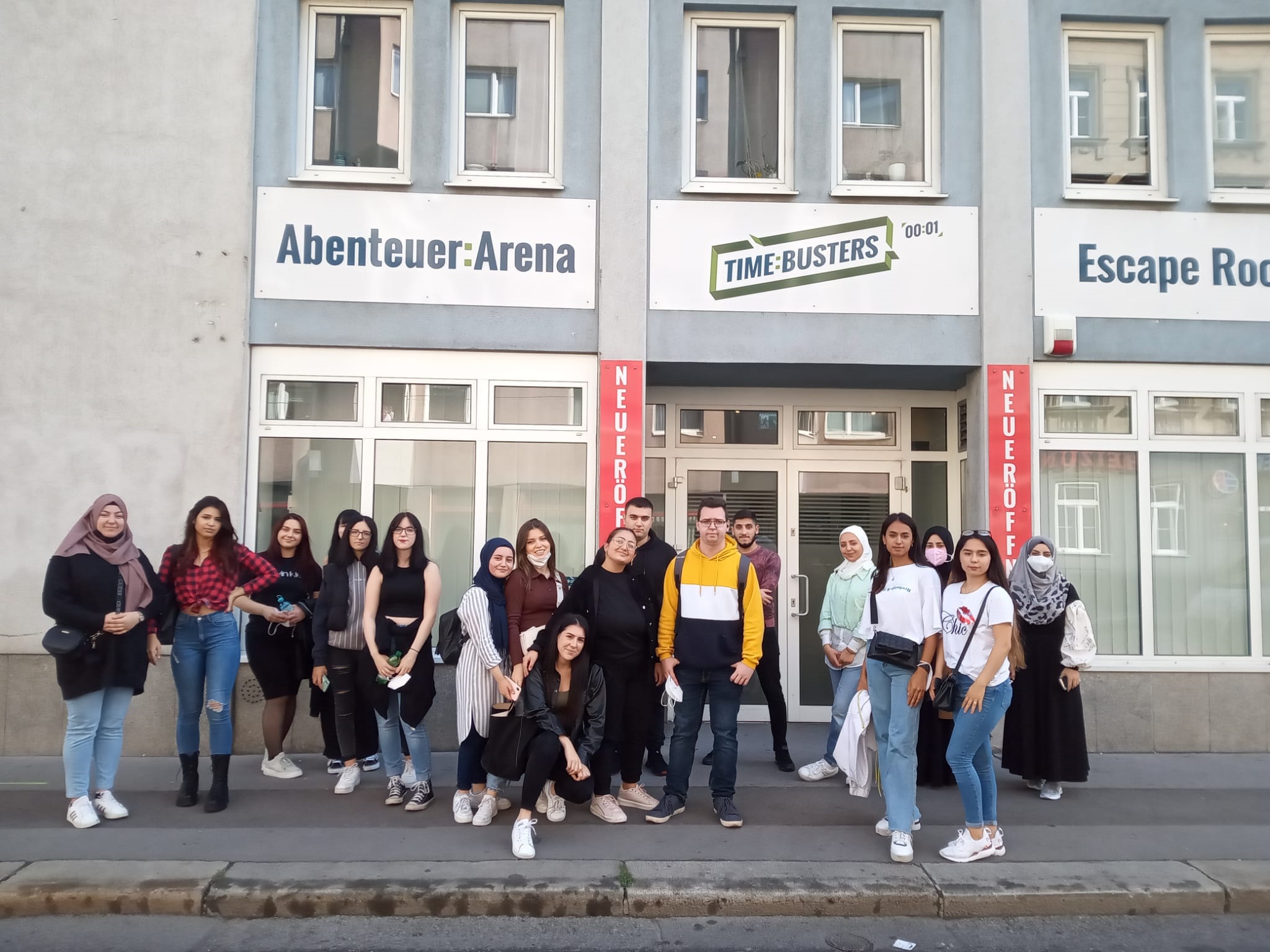 Der 1. AUL unternimmt am 1. VIP-Tag bei hochsommerlichen Temperaturen eine Wanderung durch den Großstadtdschungel. Startpunkt der Exkursion ist die Schnellbahnstation Wien Mitte, von der wir durch den Stadtpark – vorbei am Kursalon und dem Johann-Strauß-Denkmal – in Richtung Innerer Stadt marschieren. Wir überqueren die Ringstraße mit ihren prächtigen Palais und flanieren entlang der von schrulligen Geschäften gesäumten Weihburggasse, bis wir schließlich vor dem Stephansdom stehen. Es bleibt Zeit für eine ganz kurze Besichtigung des Wahrzeichens, bevor wir in der Rotenturmstraße in das Fast Food Restaurant unseres Vertrauens einkehren. Frisch gestärkt erblicken wir vom Schwedenplatz aus in der Ferne den Gipfel der Urania-Sternwarte, wenden uns jedoch ab und wagen den Abstieg zum Donaukanal, wo es zahlreiche Graffitikunstwerke zu bestaunen gibt. Der Stadtspaziergang führt uns im Anschluss weiter zum Karmelitermarkt und schließlich zum Ziel: den Time Busters in der Unteren Augartenstraße, wo es als großes Finale des Tages gilt, innerhalb von 60 Minuten knifflige Rätsel zu lösen und so dem sogenannten „Escape Room“ zu entkommen. Sehr zur Freude des Klassenvorstands gelingt dies auch der überwiegenden Zahl der Schülerinnen und Schüler und so ist es uns möglich, nach einem kurzen Abstecher in den Augarten und einer weiteren Wanderetappe bis zum Bahnhof Wien Praterstern (zurückgelegte Strecke insgesamt: über 5 km!), gegen 14 Uhr die Heimfahrt anzutreten.