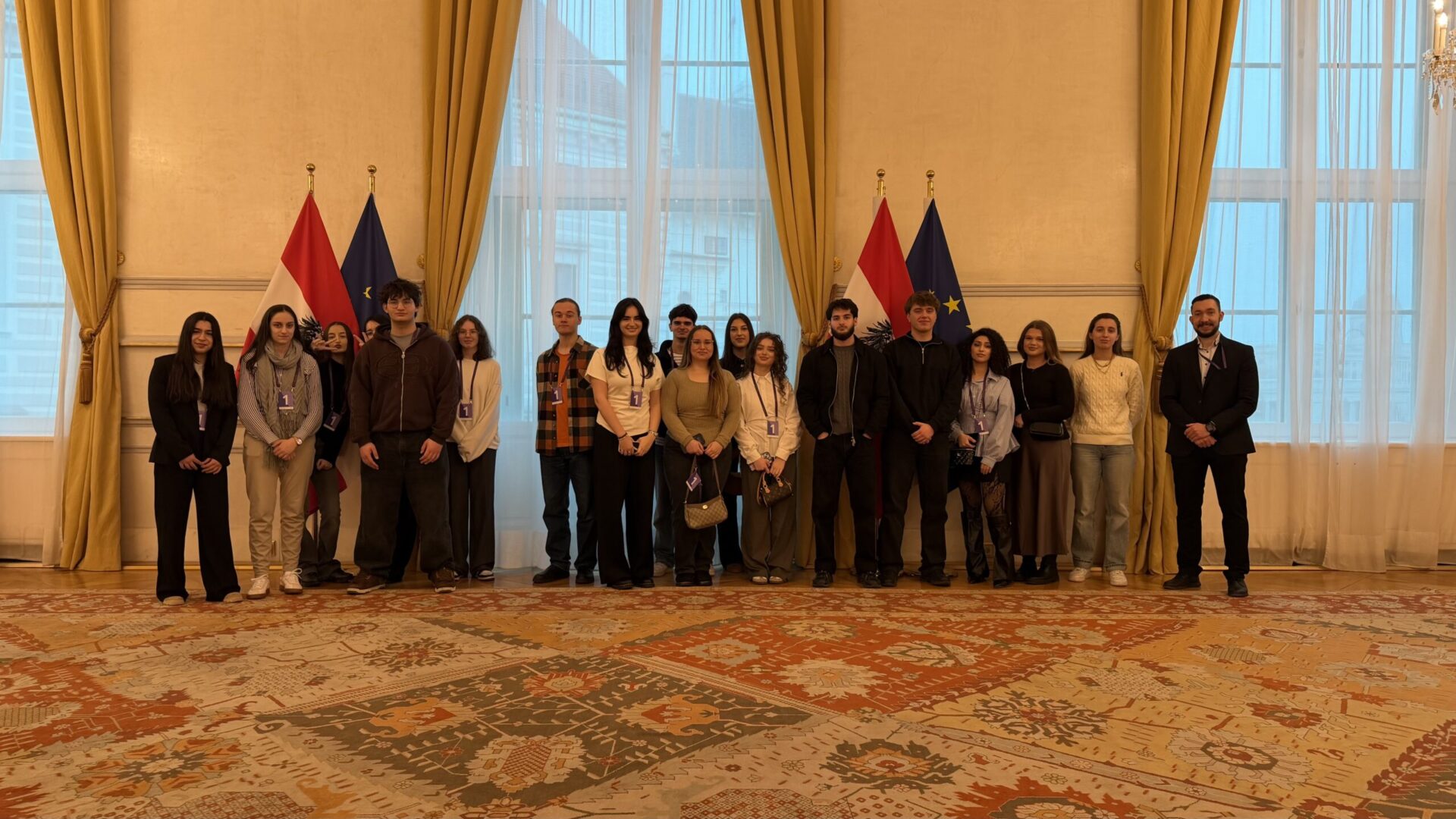 Der Guide führte mit spürbarer Begeisterung durch die Räume und ließ die Geschichte des Hauses lebendig werden. Anekdoten, kleine Insiderblicke und große Zusammenhänge verschmolzen zu einem eindrucksvollen Bild davon, wie Politik entsteht. Ein Highlight: Die Schüler*innen durften auf jenen Plätzen sitzen, an denen sonst Minister*innen und der Bundeskanzler sowie Vize-Kanzler Platz nehmen – ein Perspektivenwechsel, der Eindruck hinterließ.