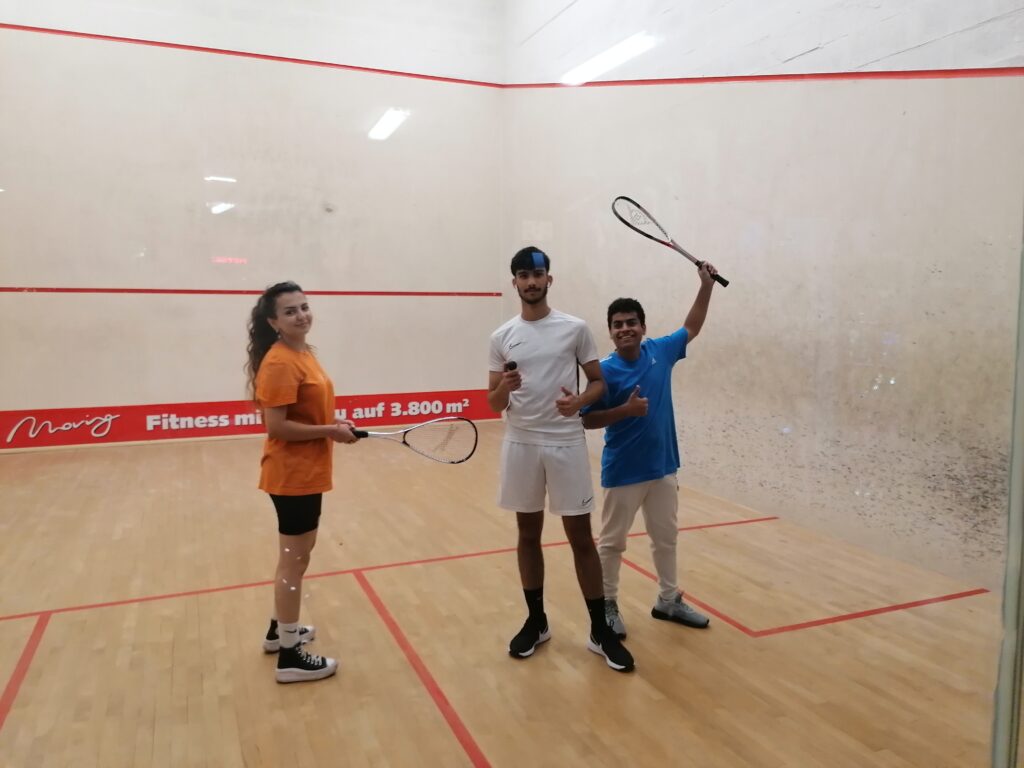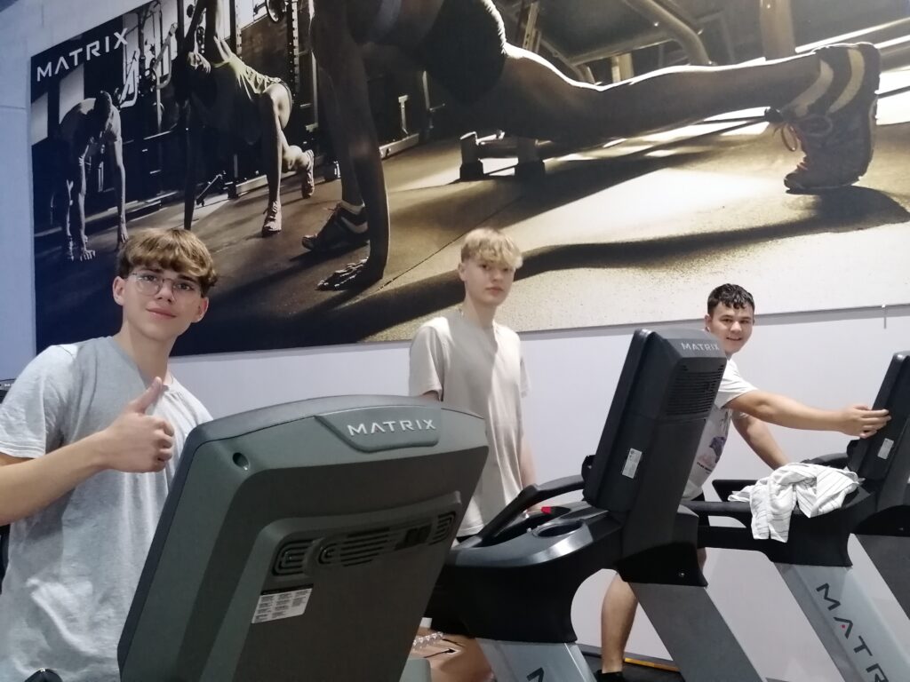 Neben einem umfangreich ausgestatteten Fitnessstudio erwarteten die Schülerinnen und Schüler eine Tennishalle, Squash- und Badmintonhallen, sowie Tischtennistische. Gleich zu Beginn wurde gemeinsam mit einer Trainerin aufgewärmt und der Kreislauf bei einem hochintensiven Intervalltraining in Schwung gebracht. Anschließend nutzten einige die Möglichkeit um an ihrem persönlichen Krafttrainingsplan weiterzuarbeiten oder probierten unter Anleitung erstmals selbst Krafttraining an Geräten aus. Für Abwechslung wurde in der Tennishalle gesorgt. Auch versuchten sich einige Schülerinnen und Schüler beim Squash. Die teilnehmenden Schülerinnen und Schüler waren begeistert von der sportlichen Vielfalt und den einen oder anderen Tipps für ihr Training, welche sie an diesem Tag mit nachhause nehmen konnten.